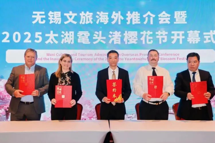 作为与日本弘前樱花园、美国华盛顿樱花园齐名的“世界三大赏樱胜地”太湖鼋头渚此次借力国际化平台,与欧赛斯旅行社等4家欧洲旅行商签署客源互送协议,并聘请4位海外推荐官担任“无锡文旅海外推广大使”。
