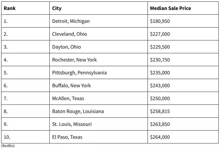 美国十大都市区的房价低于$30万 有没有您想去的?