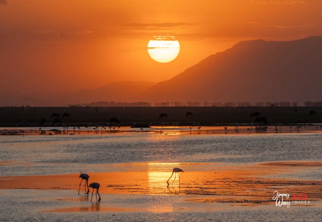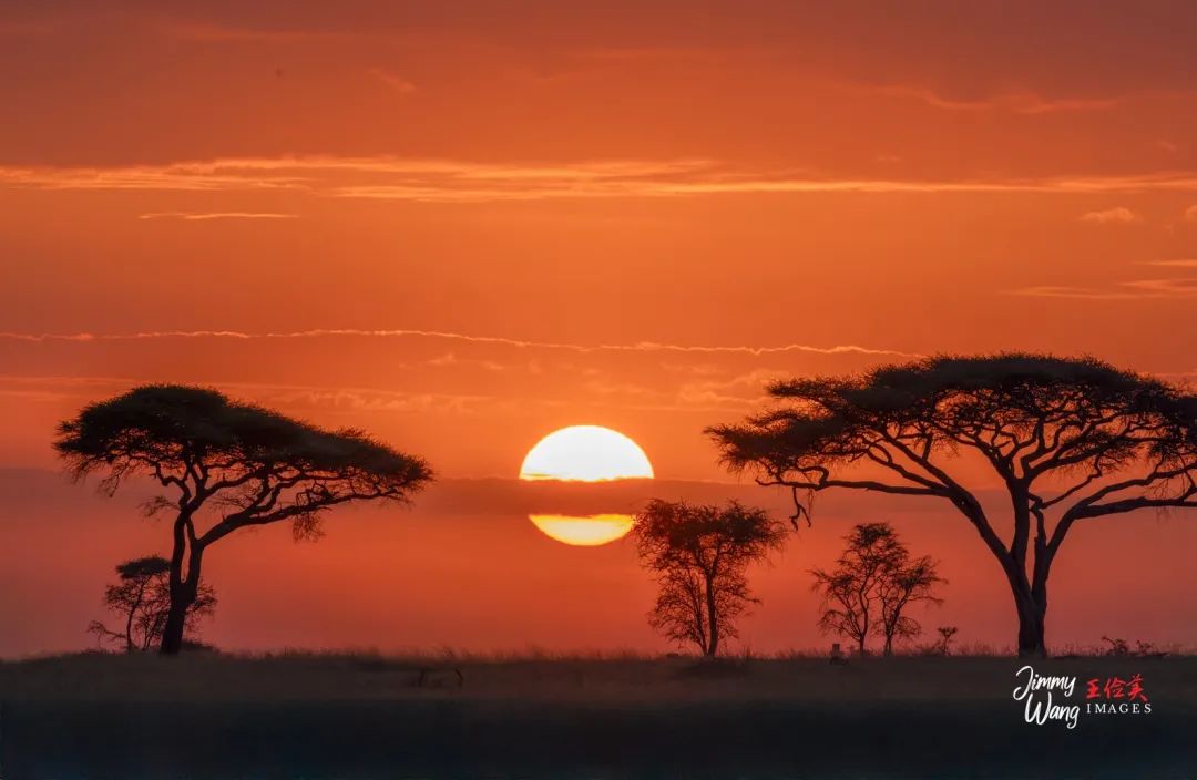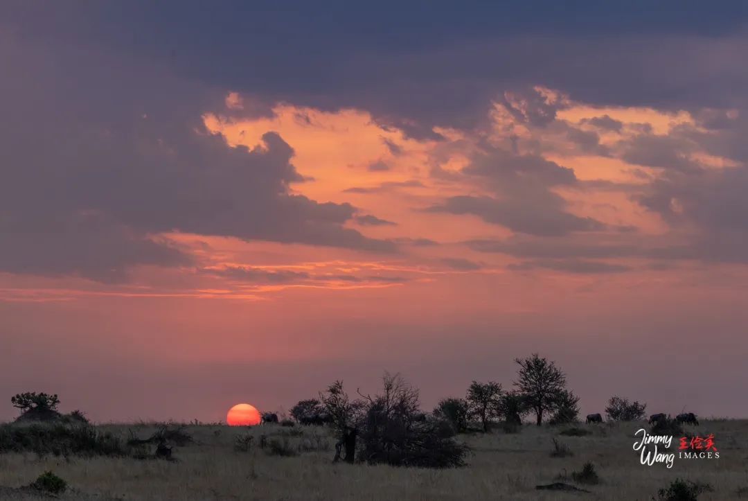 夕阳缓缓下沉,大地一片静寂。非洲是野生动物的天堂,也是人类心灵的净土。(The sun sets slowly, and the land is silent. Africa is a paradise for wildlife and a haven for the human soul.)
