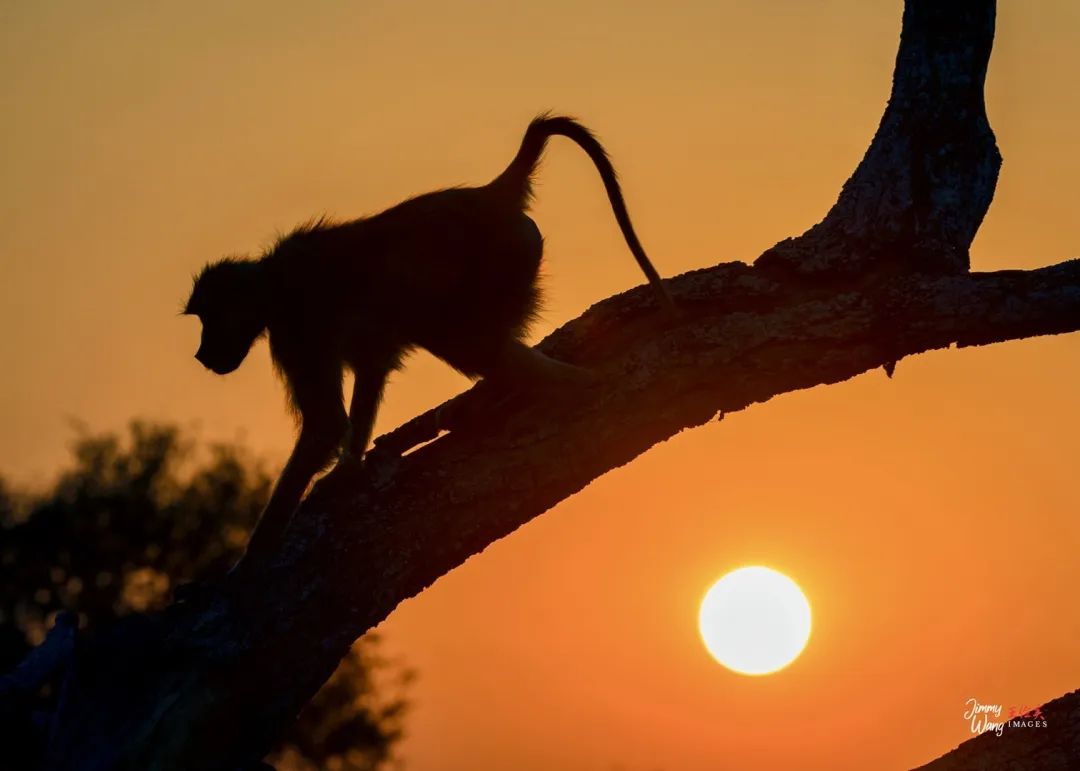 夕阳下的狒狒,剪影轮廓清晰,它似乎在诉说着,生活中的每一刻都值得被珍藏。The baboon in the sunset, with a clear outline, seems to be telling us that every moment in life is worth treasuring.