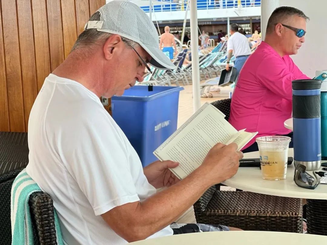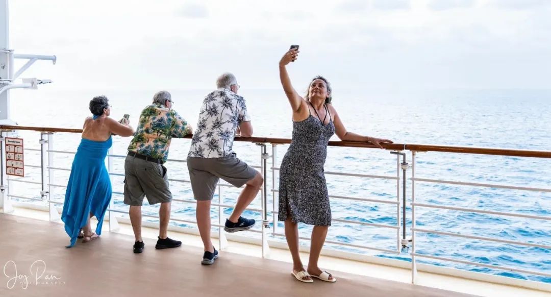 游轮上开启度假模式的游客