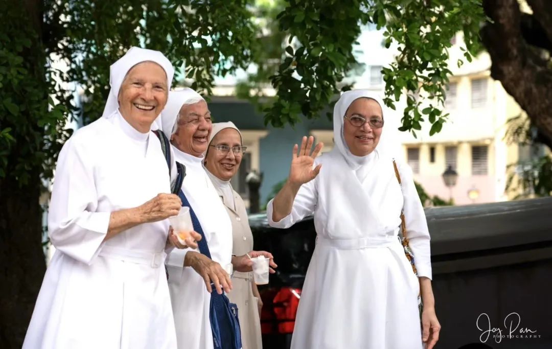 在街头吃冰激淋的修女