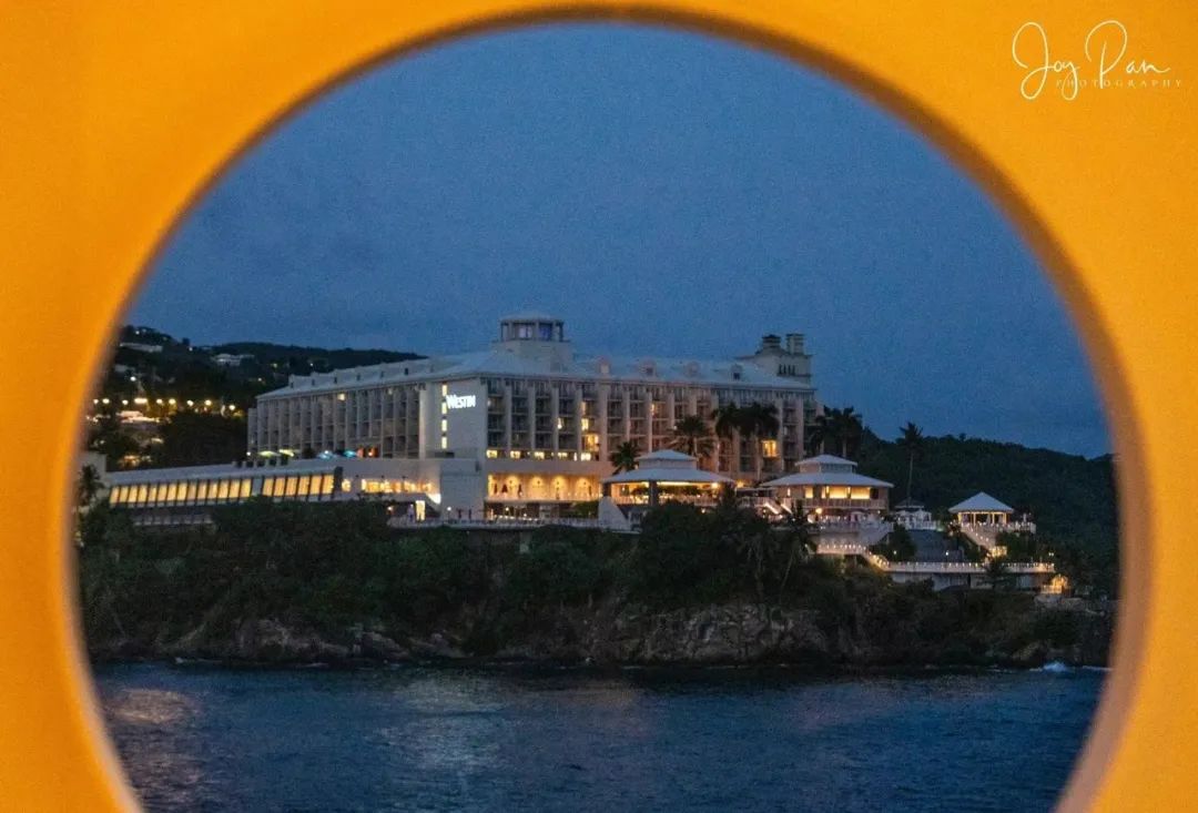 圣托马斯岛是美属维京群岛的一部分,面积80.9平方公里,人口5万多。我们乘坐游轮,特别喜欢把游轮当道具,从不同的角度拍摄这个巨型船体。