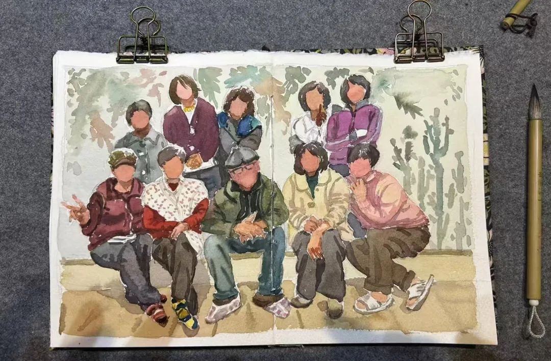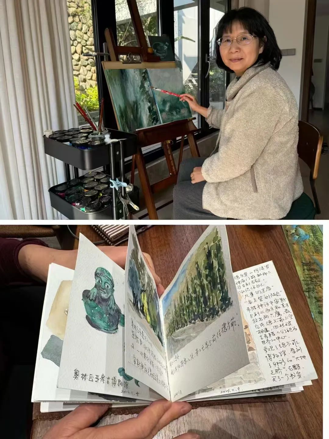 图3,正值周末,巧遇一众大夫在跟吴老师学习绘画,上方为曾医生在作画,下方呈现吴老师欧洲旅行素描写生集,大开眼界,受益匪浅;