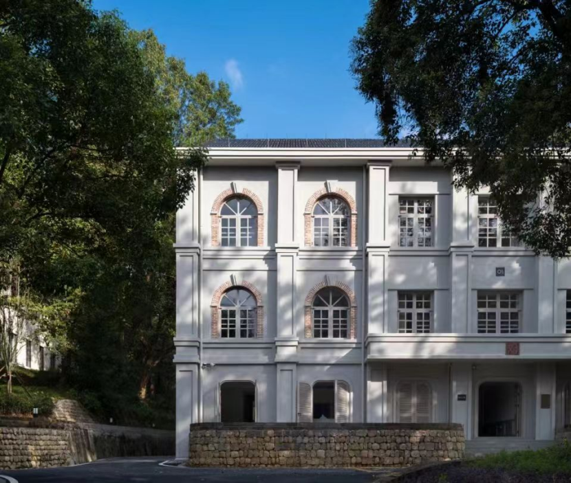 “龙岗故事观堂酒店”的驻地原为1940年筹建的昌化中学旧址。而戴茂新先生出国前,就是昌化中学的老师。1943年,浙江省政府浙西行署曾迁至此办公,领导浙西22个县抗战,这里还营救过美国海军陆战队史密斯上校和空军杜立特飞行大队。到了1970年,它又成为杭州无线电二厂,曾生产“东方红一号”卫星部分重要零件。酒店墙上的老照片诉说着曾经发生在这里的历史事件和著名人物。后工厂搬离,这片园区趋于沉寂。直到2019年,华侨企业家戴茂新出资购买并进行修缮。