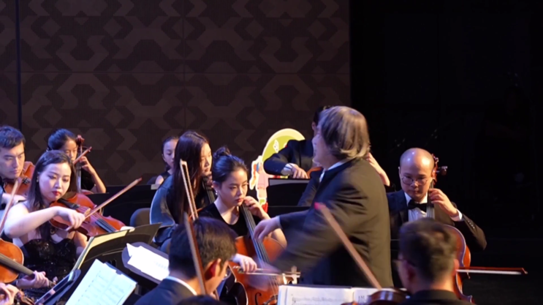 音乐会在“华年筑梦·月桂初绽”篇章中拉开帷幕,青少年艺术家们通过童声合唱、琵琶与大提琴合奏、少年舞蹈等表演,展现了艺术滋养下的青春活力。随后,“明霄共济·千里同晖”篇章中,首部以新时代奉贤为主题创作的交响乐《圆梦奉浦》完成全球首演,将整场演出推向高潮。