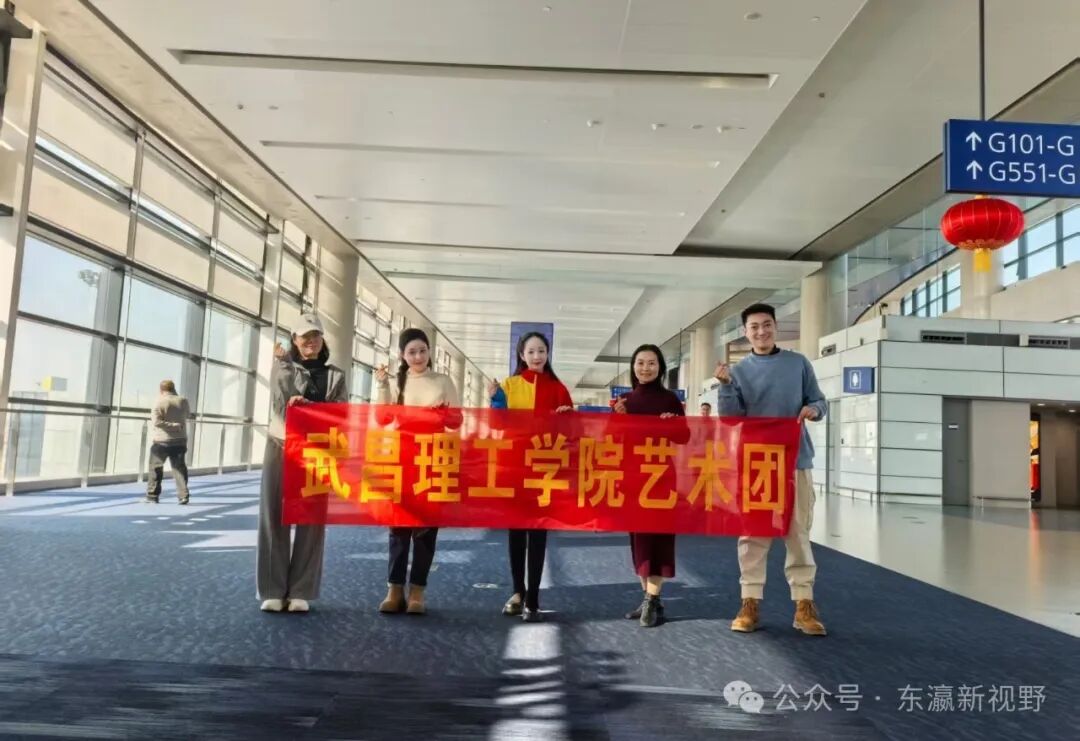 徐颖等“武昌理工学院艺术团”5名成员出发赴大阪时合影