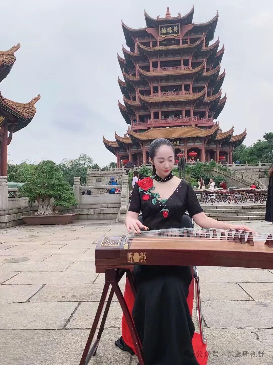 徐颖在武汉黄鹤楼下演奏古筝