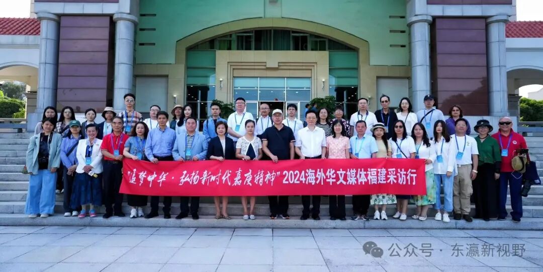 “追梦中华·弘扬新时代嘉庚精神”2024海外华文媒体福建采访行全体成员及福建、厦门侨联领导等合影