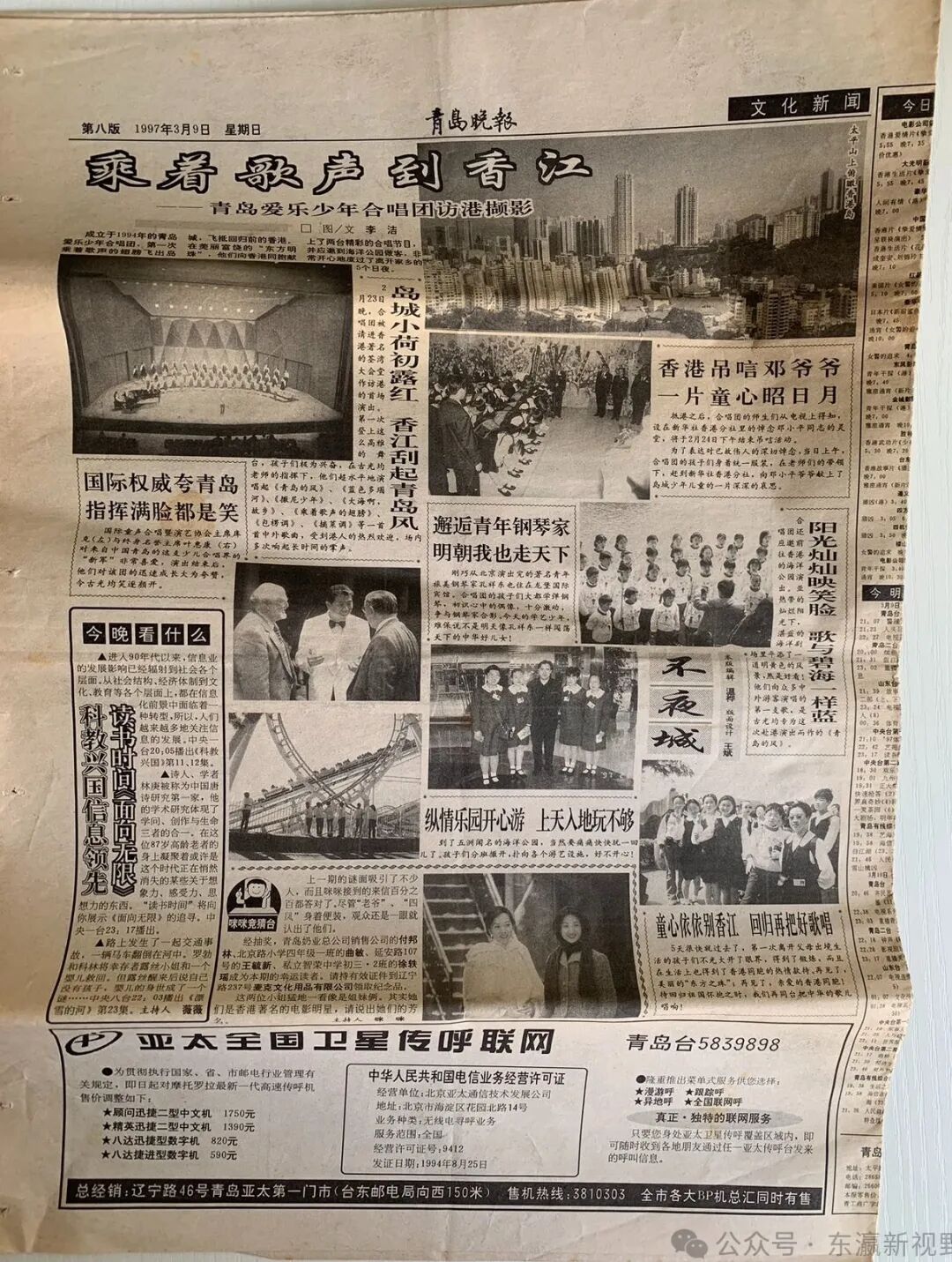《青岛晚报》报道青岛爱乐少年合唱团在香港的演出