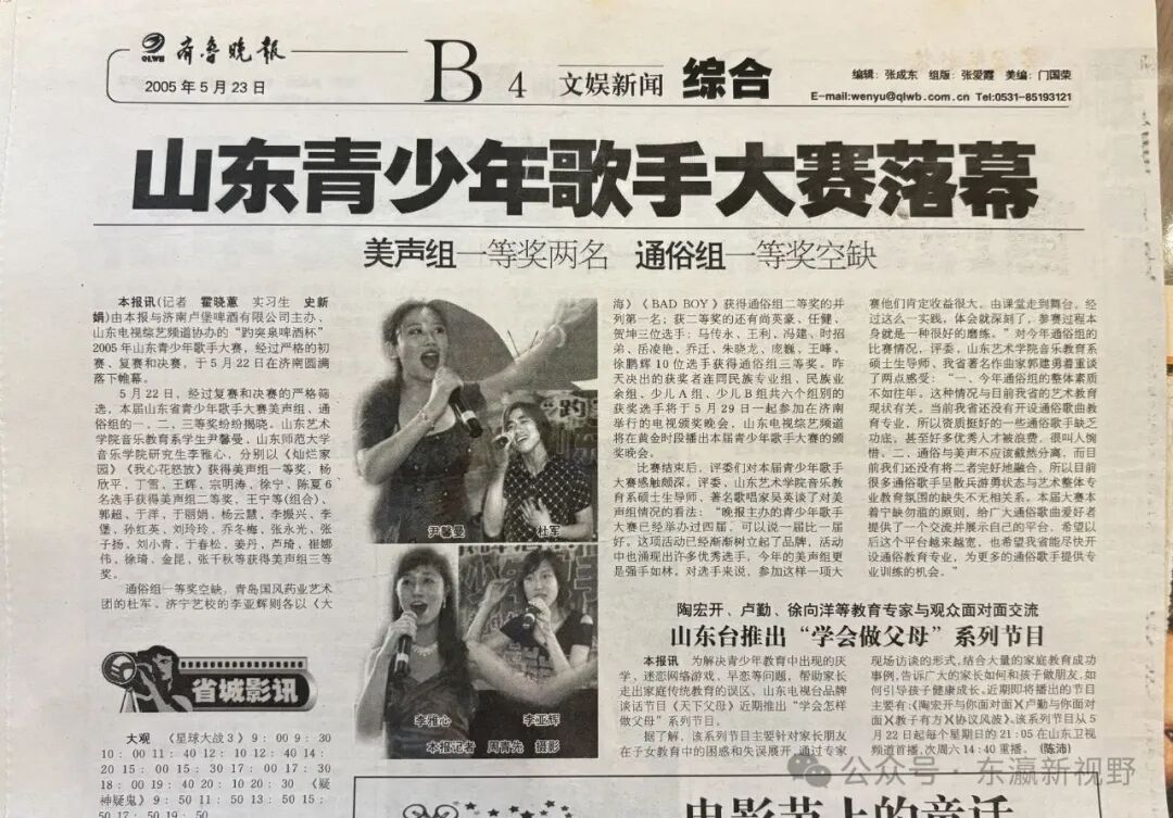 李雅心获得山东青少年歌手大赛美声组一等奖的报道