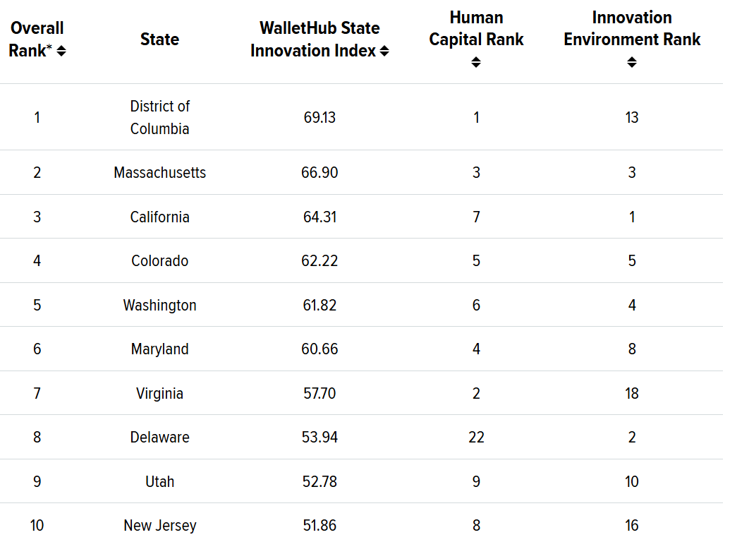 大华府DMV地区创新实力非凡:WalletHub发布2025年排名,华盛顿特区摘冠,马里兰第6、弗吉尼亚第7。