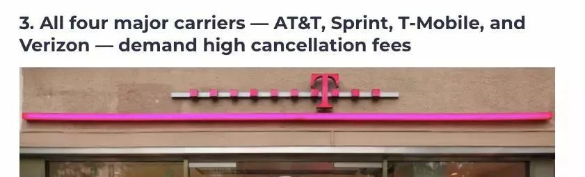 如果你是签约用户,想要在合同到期之前取消签约,都有“天价”取消费等着你。比如AT&T取消费高达$325, Sprint和Verizon收取$350,除非你在合同的前两周取消合同,T-Mobile将根据合同的剩余天数提出$200的取消费用。