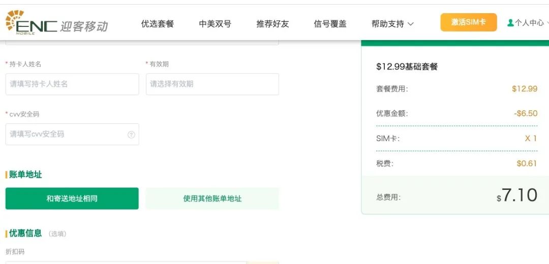 第四步、打开迎客移动ENC Mobile官方网站 www.encmobile.com,使用折扣码开始订购