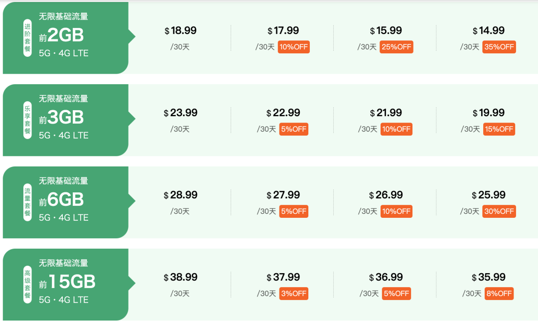迎客移动拥有美国覆盖最广的5G高速网络,覆盖面积是AT&T的2倍,Verizon的5倍,让您随时畅享高速流量。它的所有套餐均包含高速流量(5G·4G LTE流量)和基础流量(128kbps),也就是说,当你用完高速流量后,基础流量无限使用。虽说是低速流量,但城市君测试下来,使用微信、浏览网页不成问题。