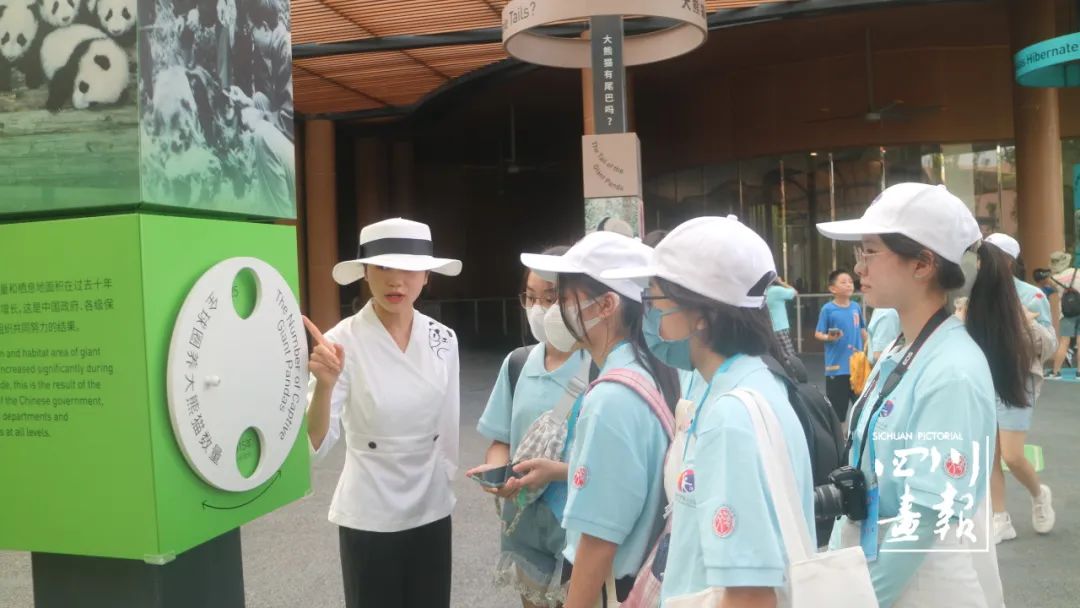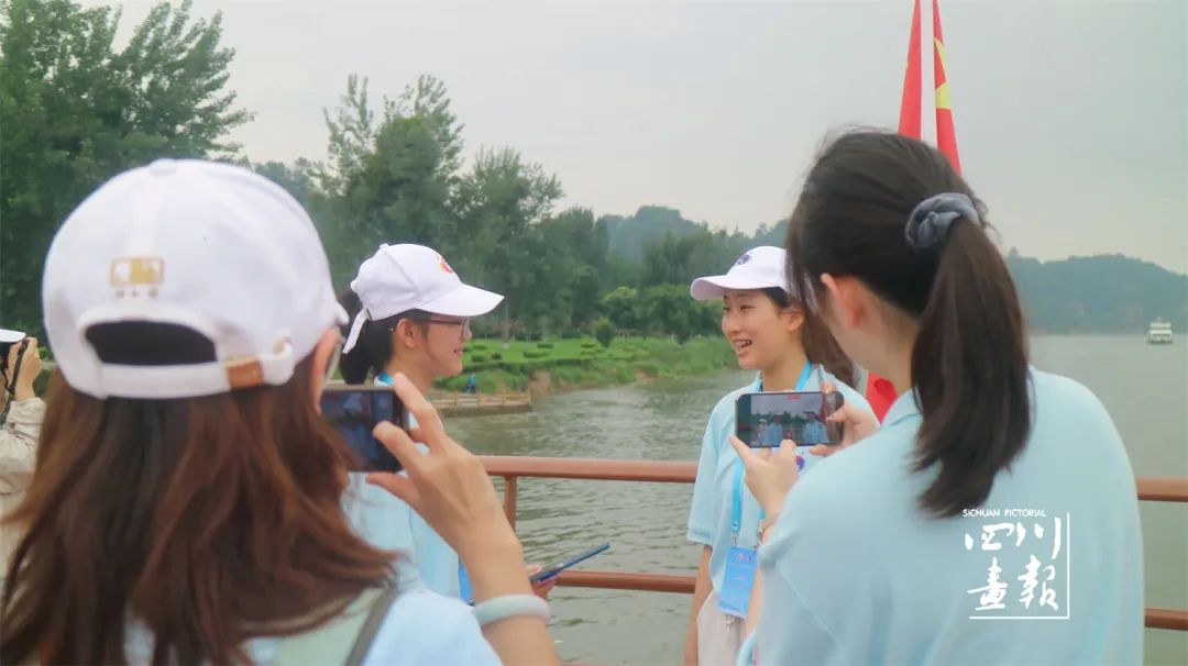 德国小记者王宇宁与澳大利亚小记者常菲对乐山大佛进行报道