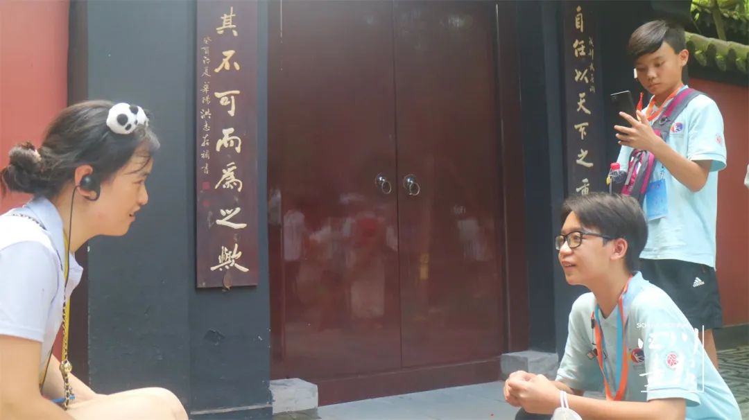 小记者在武侯祠三义庙前朗诵诸葛亮名作《出师表》