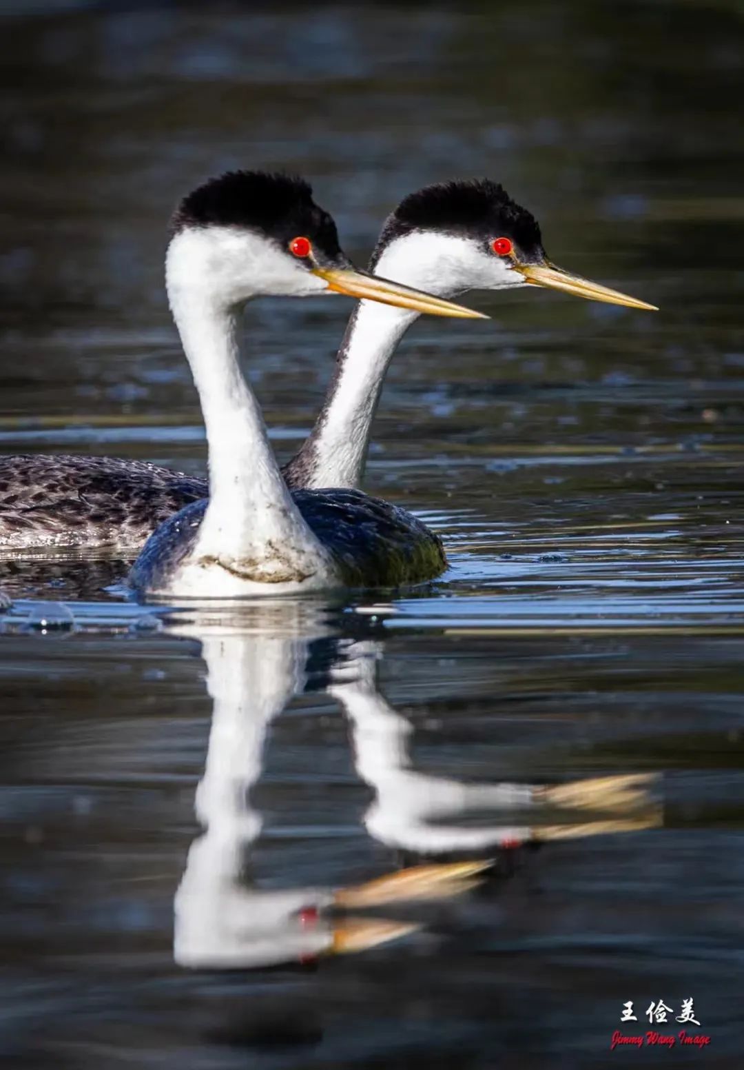 今天起了个大早,希冀拍到鸊鷉跳舞,结果空手而归,随便上几张片子,纪录一下。北美鸊鷉(Grebes )头冠与颈背部为黑色,背部是褐灰色,以下部位均为白色,有一个暗黄色或橄榄色的鸟喙,红色眼睛由暗色眼圈包围,非常优美。