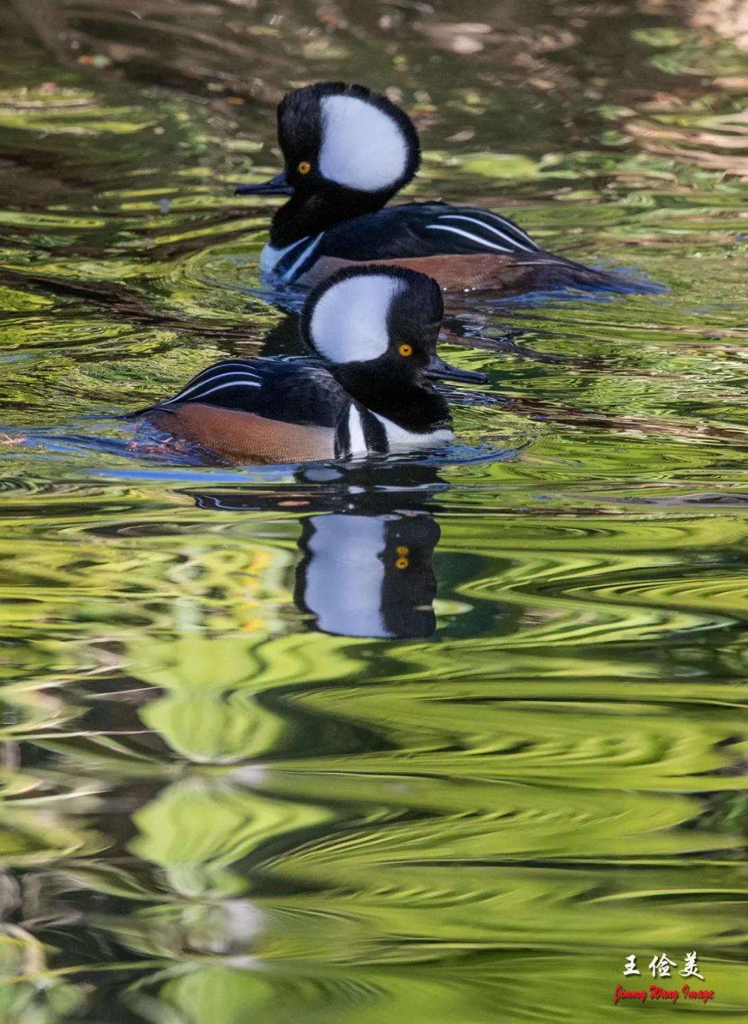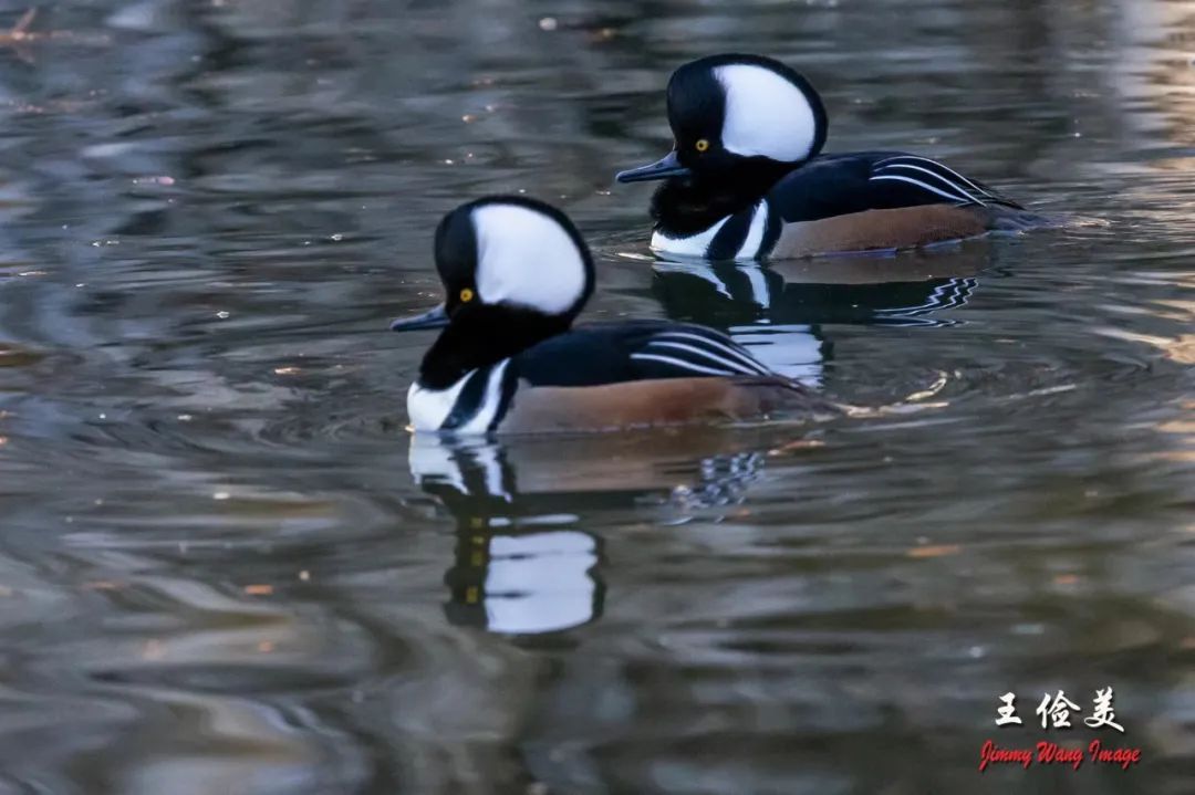 下二图,游弋的秋沙鸭,呆萌傲娇,出双入对。