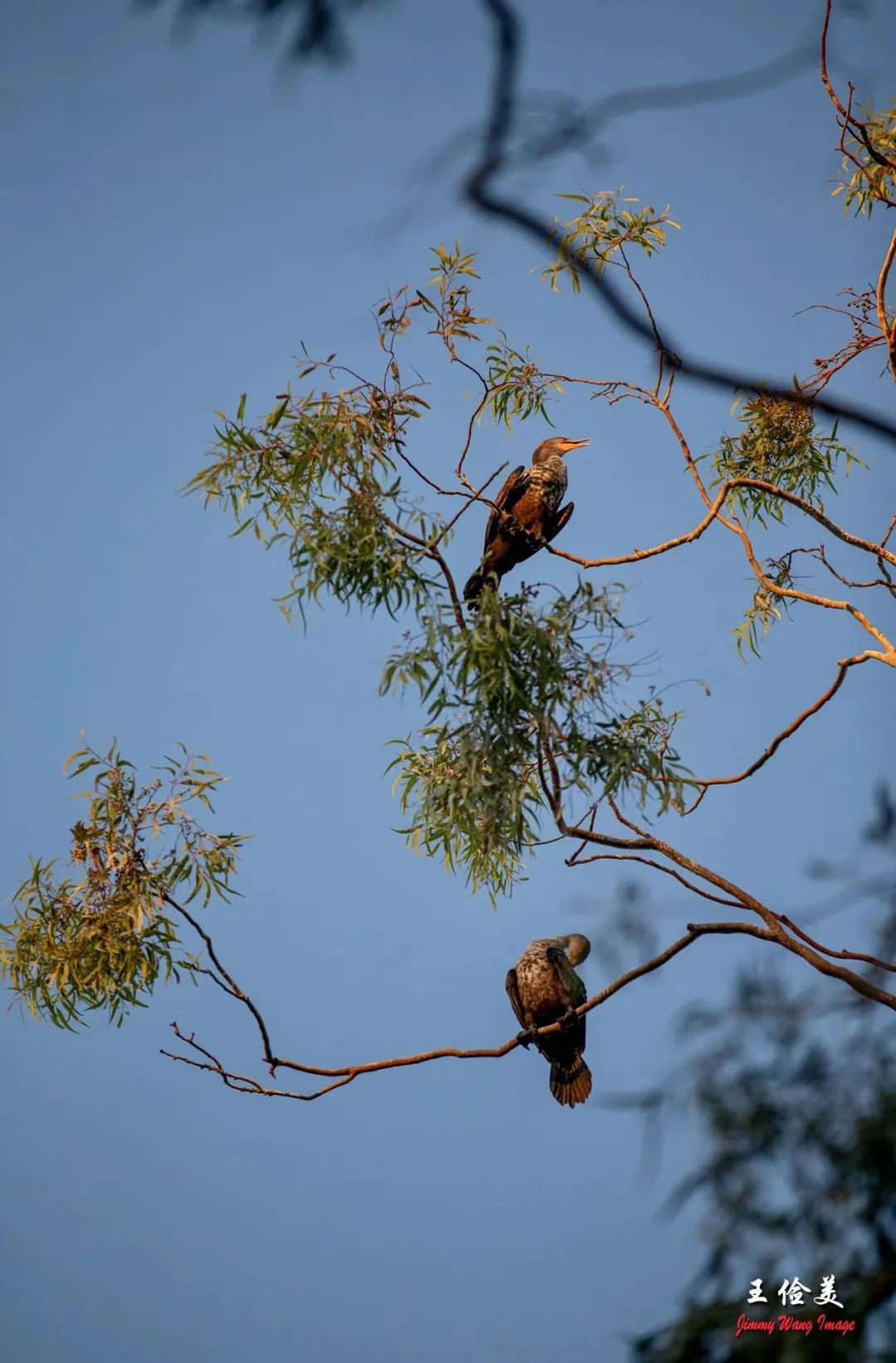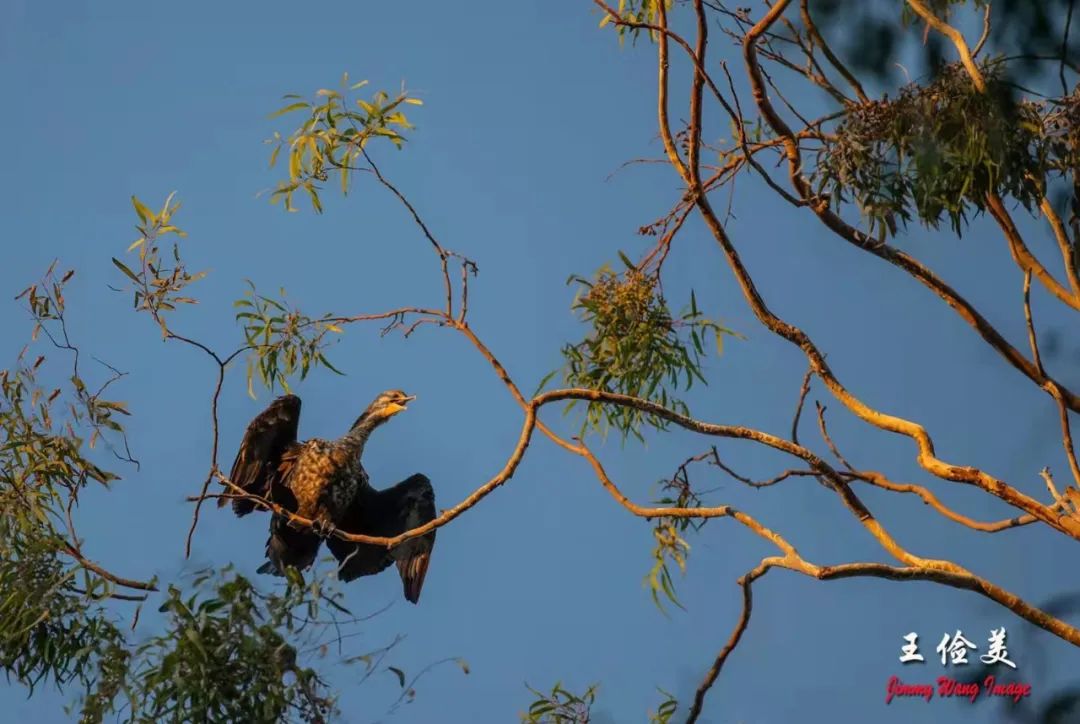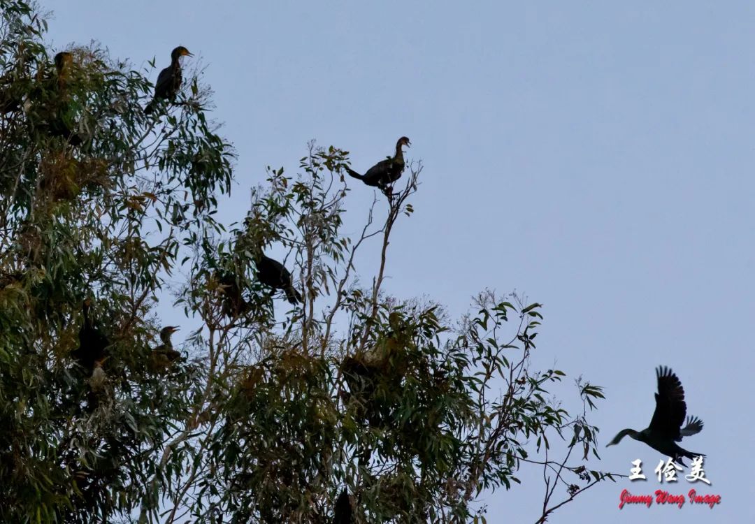 最后两张图片,上树栖息的鸬鹚,各栖高枝望远。