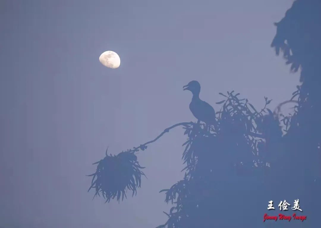 如下为黄昏与月夜中的鸬鹚。