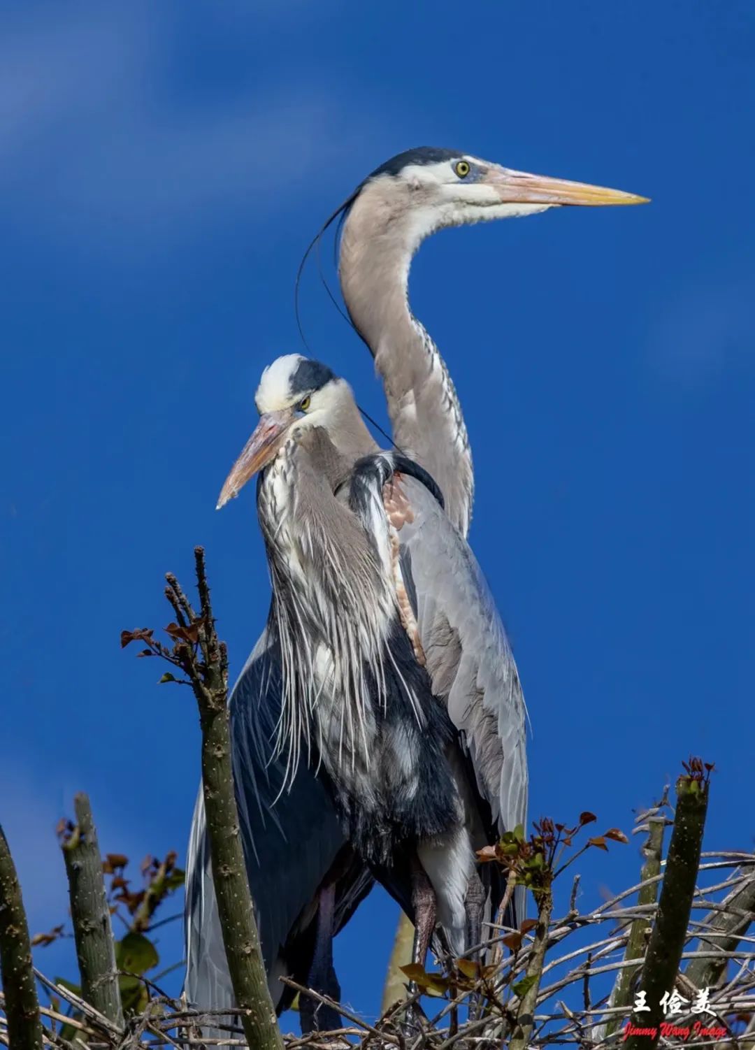 灰鹭(Grey Heron)交颈之亲,百无聊赖。