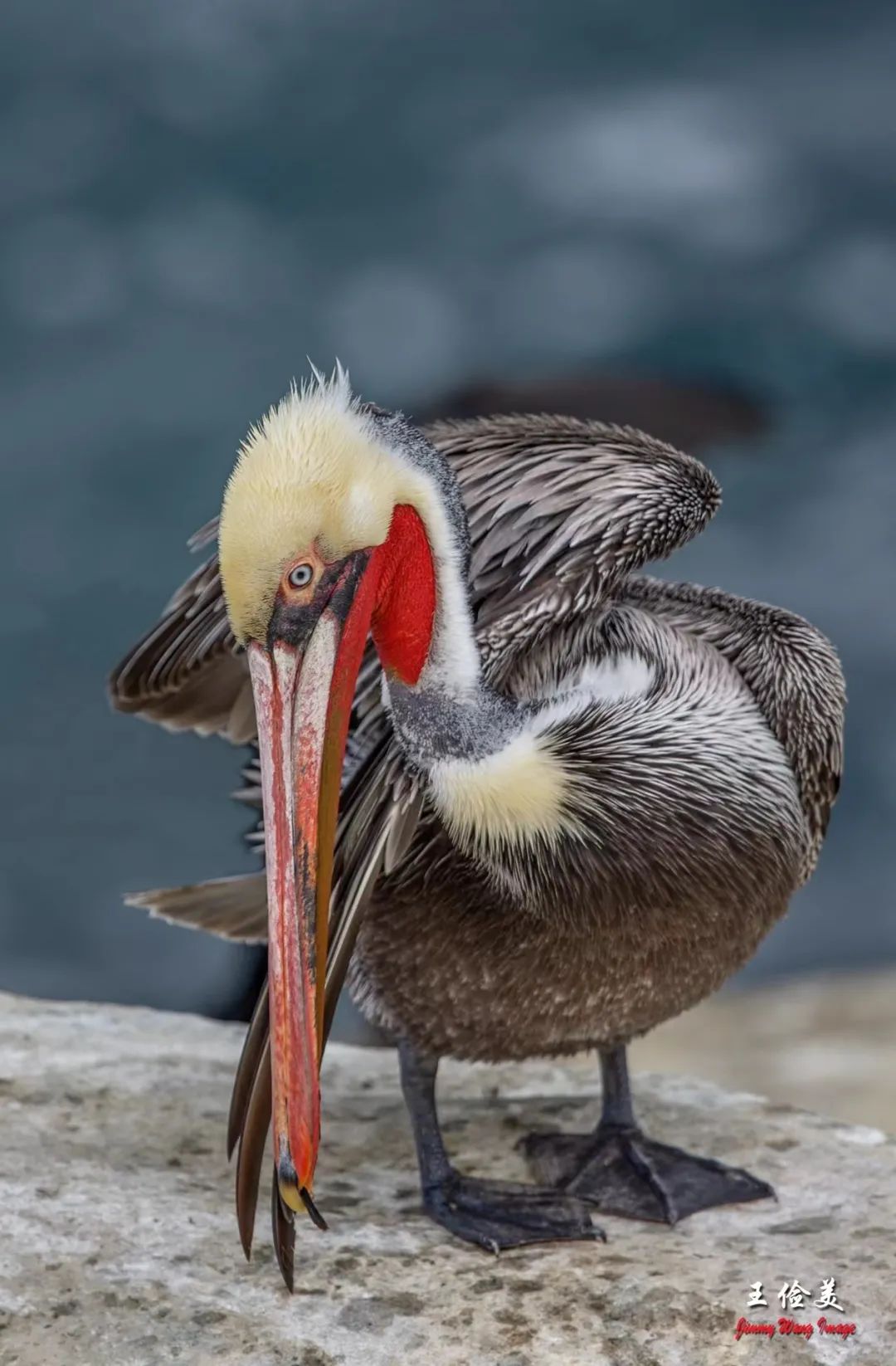 繁殖季的鹈鹕,且看嘴喙凸起的标配。鹈鹕的囊是它最显著的特征,也是它谋生和养育后代的重要工具。鹈鹕在喂雏鸟时,母鸟要先将鱼吃下去经过消化以后再返到囊里,让孩子们在这个特殊的大碗里尽情地享用美餐。