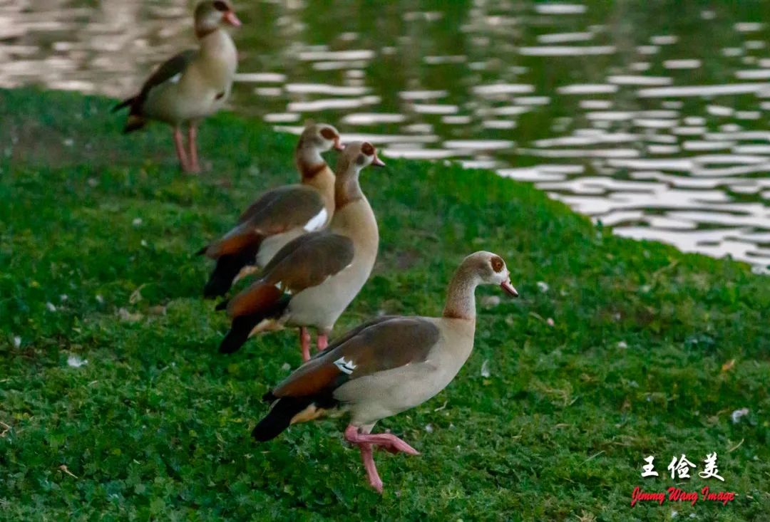 埃及雁(Egyptian Goose )为鸭科埃及雁属鸟类,俗名秃雁,眼窝处有一对似戴上墨镜的红眼圈,具有一对善于飞行的大翅膀,以及粉红色的长脚,通常分布于尼罗河上游河谷地带及撒哈拉以南非洲。