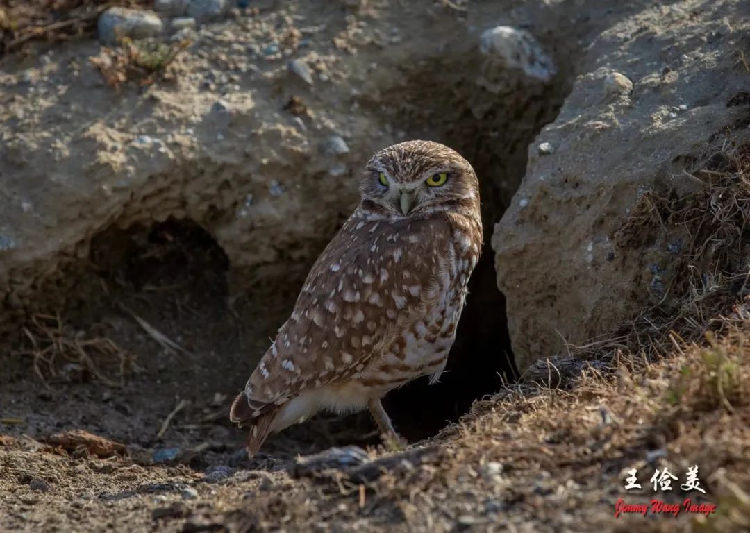 今年首度拍到穴小鸮(Burrowing Owl )。穿褐色花点衣裳的小小鸟。
