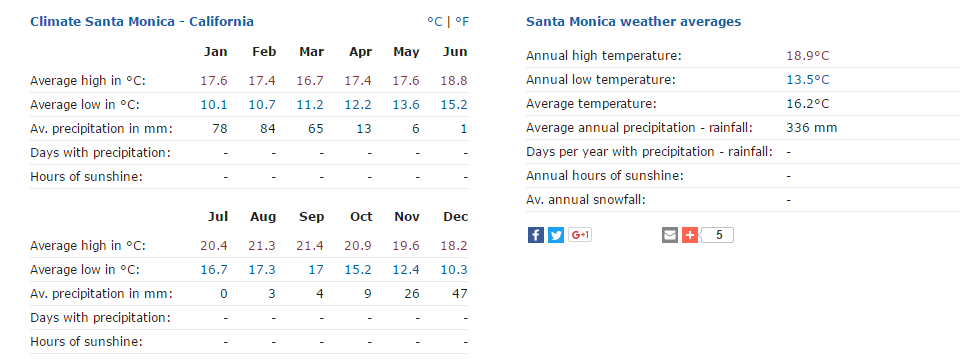 从数据图四来看,圣莫尼卡无论最热月和最冷月的平均气温都不过过高或过低,基本处在十度和二十度之间,非常宜人。拥有如此舒适的气候,这座美丽的海滨城市吸引了大批到此度假的人们,齐聚圣莫尼卡海滩。其海滩为著名海岸景点,沙滩上有一座码头延伸到海里,码头上方有一座游乐园,园内有摩天轮、云霄飞车等设施。圣莫尼卡也是非常有代表性的海滨疗养城市,它距离海滩非常近。