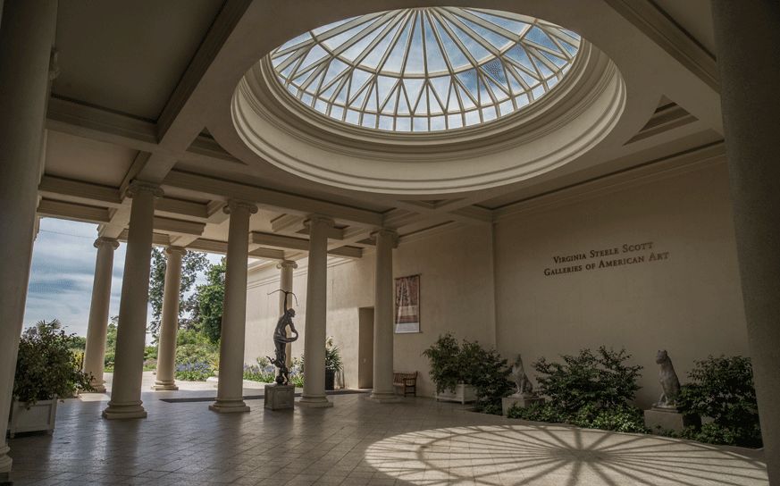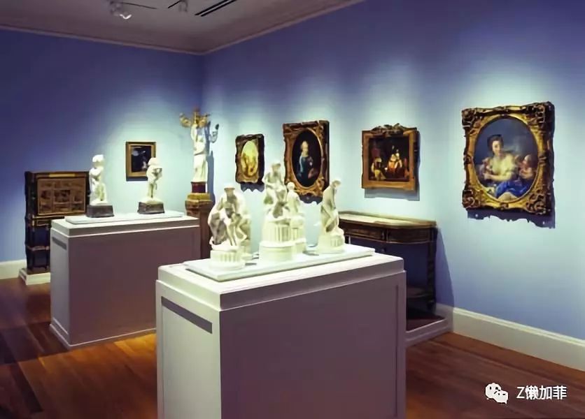 Huntington的艺术藏品分别在the Huntington Art Gallery 和Virginia Steele Scott Gallery of American Art永久展出。Huntington图书馆展出的是十八到十九世纪的英国和法国艺术品,其中最著名的是巴勒(Thomas Gainsborough)的《蓝衣男孩》、劳伦斯(Thomas Lawrence)的《粉裙女孩》和罗吉尔(Rogier van der Weyden)的《圣母与圣婴》。