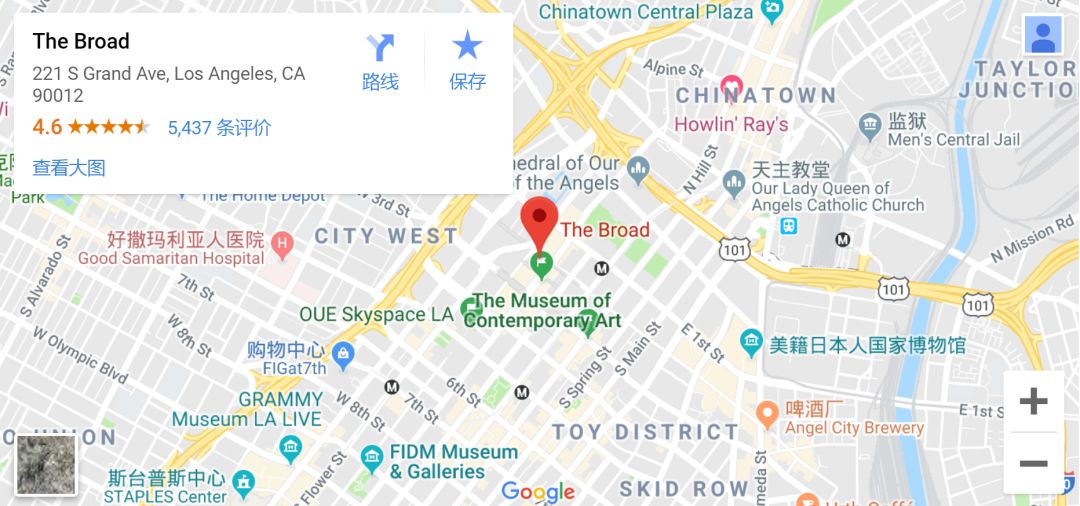 thebroad.org/tickets 网站预约即可获取免费门票;亦可直接现场排队进入;(小编去的时候是预约在右侧排队;非预约在左侧排队)排队时间看人多少;如果想要排队最好早一点,免得等候时间过长。推荐下载博物馆的免费App,提供自助语音导览功能,同时推荐参观路线等。