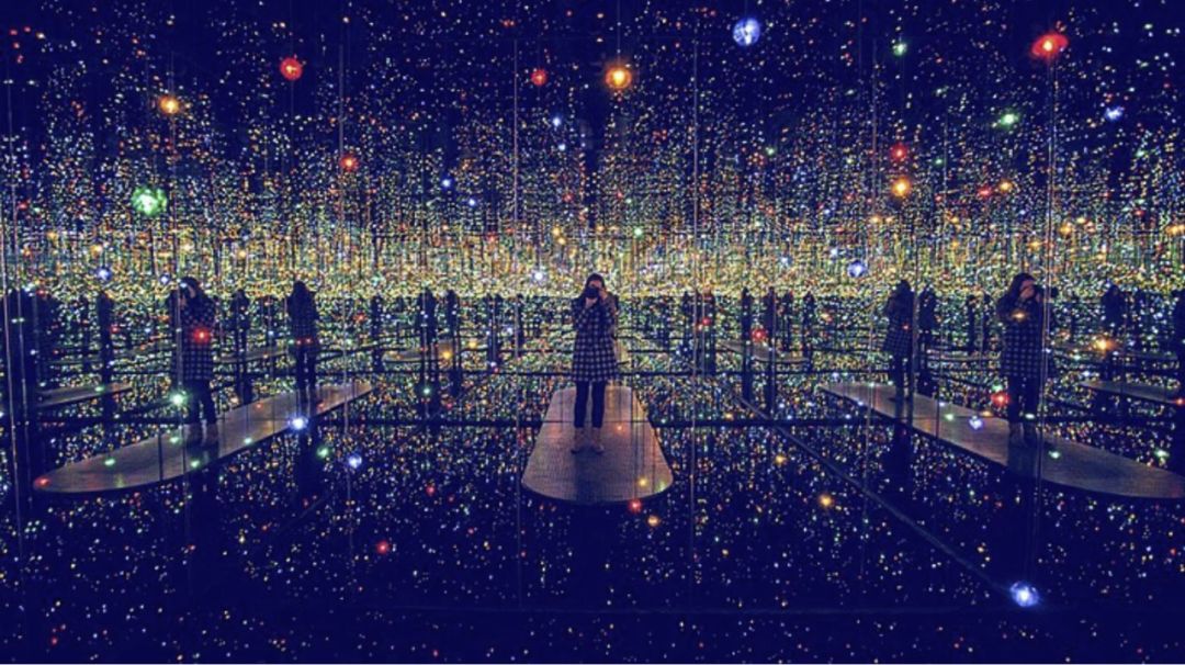 令人震撼的草间弥生 (Yayoi Kusama) 的《无限镜象之屋——百万光年之外的灵魂》(Infinity Mirrored Room – The Souls of Millions of Light Years Away),是一间镜面小屋。作为网红胜地,必要打卡的镜面小屋中装饰了犹如浩瀚星河般闪烁的LED彩灯,令人震撼不已。