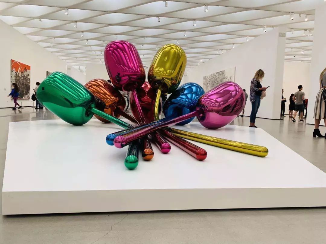 二楼的艺术品是由Jeff Koons所创作的Tulips 郁金香。Jeff Koons还有个非常知名的创作,用金属製作的气球狗,在The Broad展出蓝色的版本。一定要多凹几个造型!(注意内部展品不可触碰)