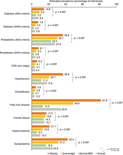 研究表明,与 BMI 正常者相比,超重/肥胖者有更高的并发症发生率,最常见的并发症是脂肪肝、前糖尿病、血脂异常和高血压。