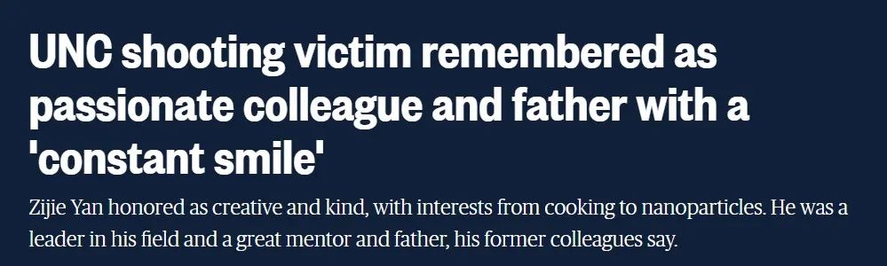 北卡华人教授严资杰(Yan Zijie)被自己的博士生齐太磊枪杀的惨剧震惊美国。