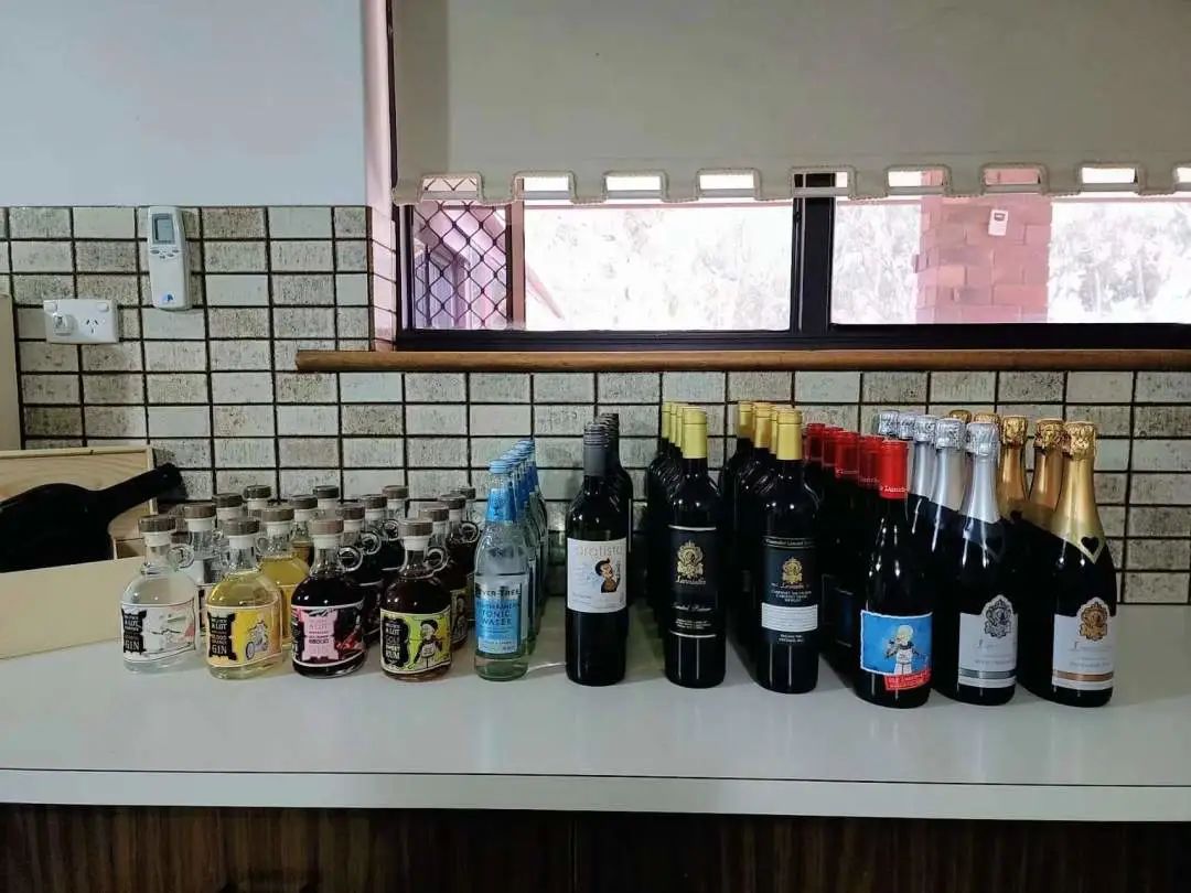 左起:时光骑士击剑原味金酒、时光骑士哈雷血橙金酒、时光骑士赛车木槿花金酒、时光骑士高尔夫烟熏甜朗姆酒、汤力水、兰尼斯特霞多丽、兰尼斯特麦克伦山谷西拉子、兰尼斯特麦克伦山谷酿酒师珍藏、时光骑士麦克伦山谷西拉子、兰尼斯特白无醇、兰尼斯特红无醇