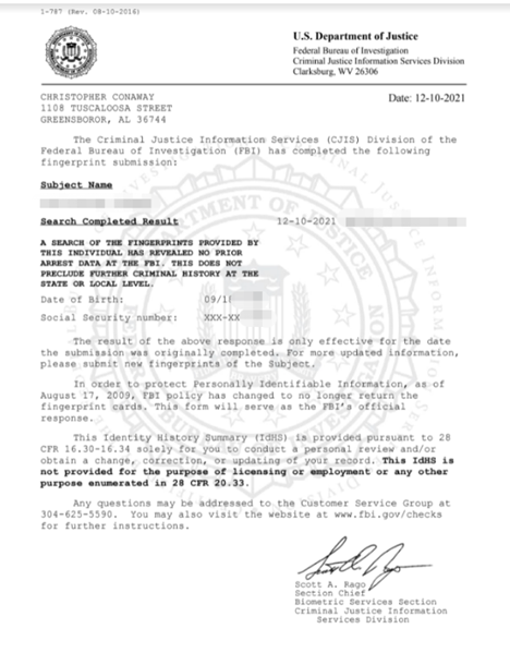 第一步:申请联邦调查局FBI出具的无犯罪记录证明