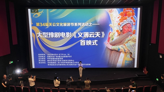 中新网运城9月22日电 (杨佩佩 杨杰英 李新锁)作为第34届关公文化旅游节的重要活动之一,大型豫剧电影《义薄云天》首映式22日在山西运城举行。