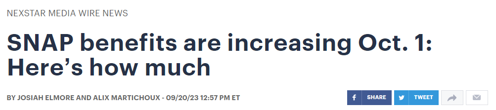据国会山报报道 10月1日开始,数百万使用补充营养援助计划(SNAP)来帮助支付杂货和其他必需品成本的人将看到福利有所增长。