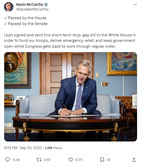 “我们会做好自己的工作,”加州共和党人麦卡锡说。他在众议院投票前说。“在这个房间里,我们将成为成年人。我们将保持政府的开放。”