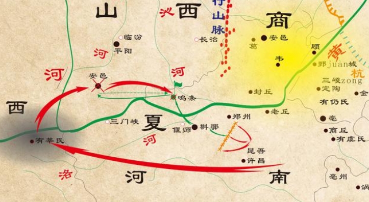 麻麻:相比于夏王朝无可挽回的衰亡,商国在国君汤的领导下,励精图治、国力日益强盛。特别是在在贤臣伊尹等人的辅佐下,商各方面的实力有了进一步的增强。 因势利导,及时将部族统治中心迁徙到北亳(今运城垣曲县),并占据景山(今运城闻喜)并开始积极筹措攻灭夏桀的战略大计。等到时机成熟后,誓师起兵,先占领了景山,并采取战略大迂回,绕道到安邑以西的芮(今运城芮城),出其不意,东西夹击,突袭安邑。夏桀仓促迎战,同商汤的军队在鸣条一带展开决战。在决战中,商军奋勇作战,一举击败了夏桀的主力部队。商就这样顺利攻克了夏,赢得了鸣条之战的胜利。随后,商汤乘胜追击,穷途末路的夏桀,带着残部仓皇逃奔到中条山,也死在了中条山。