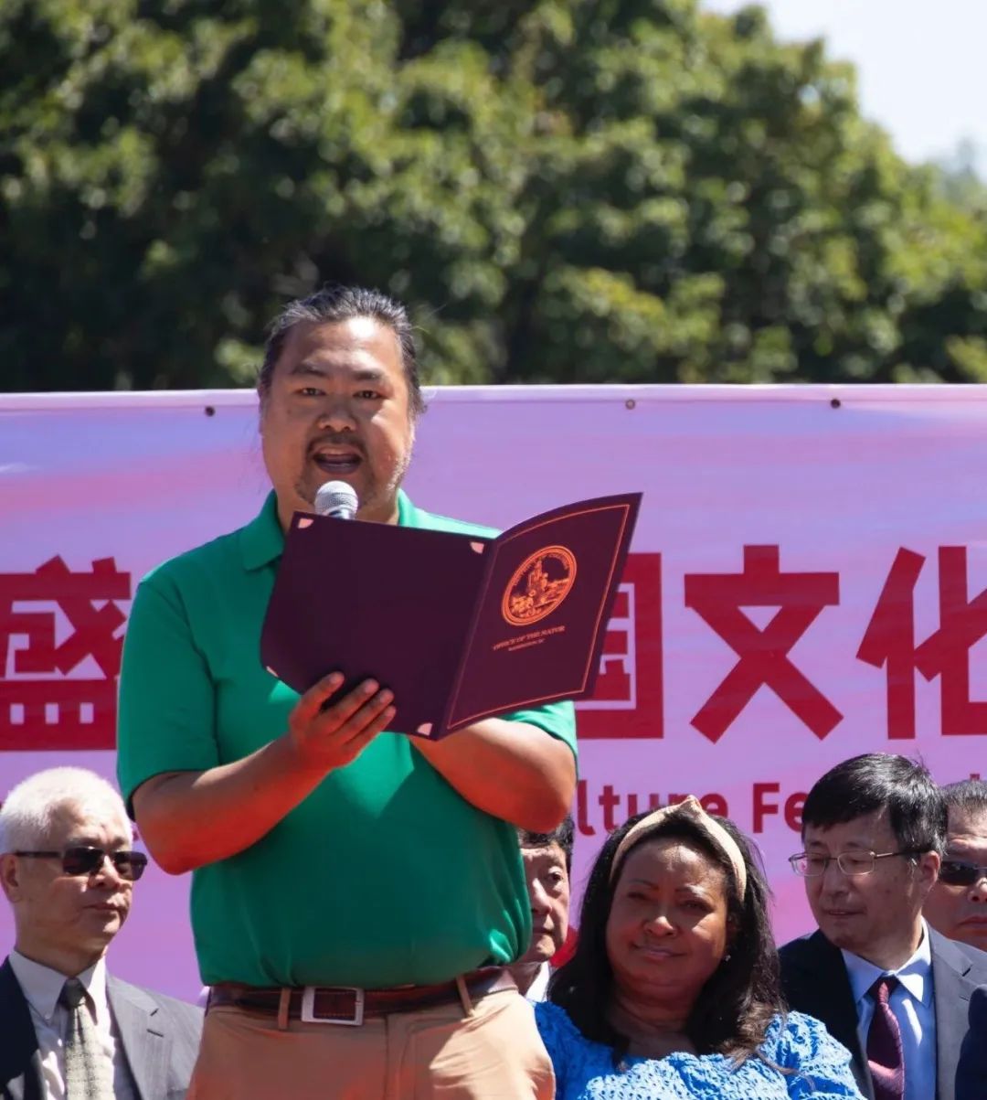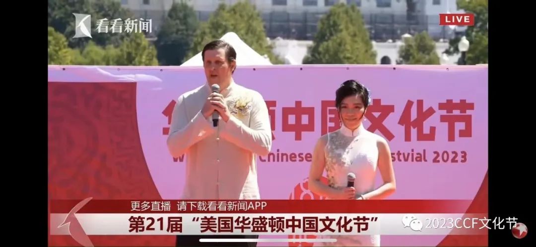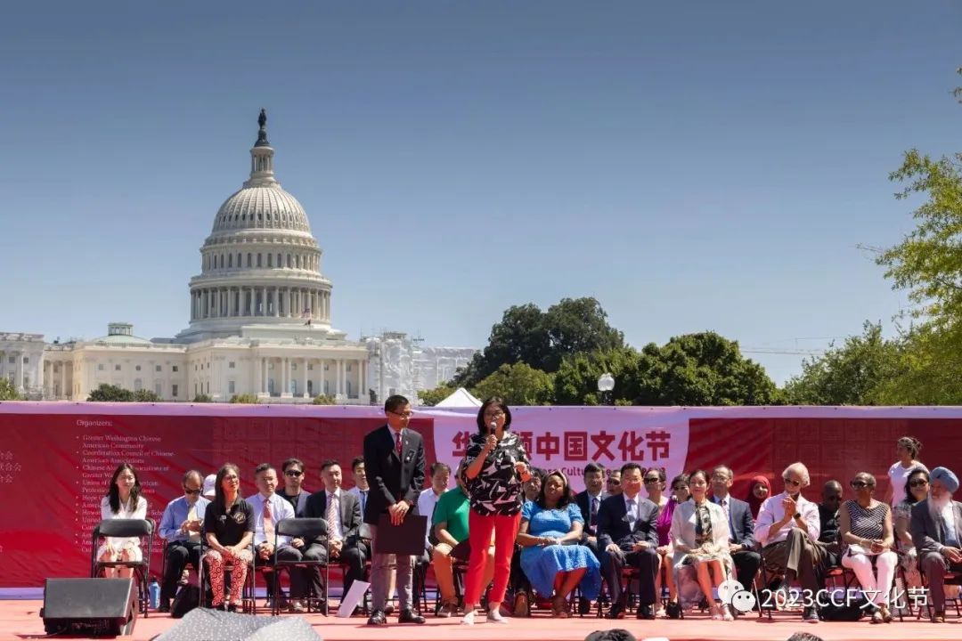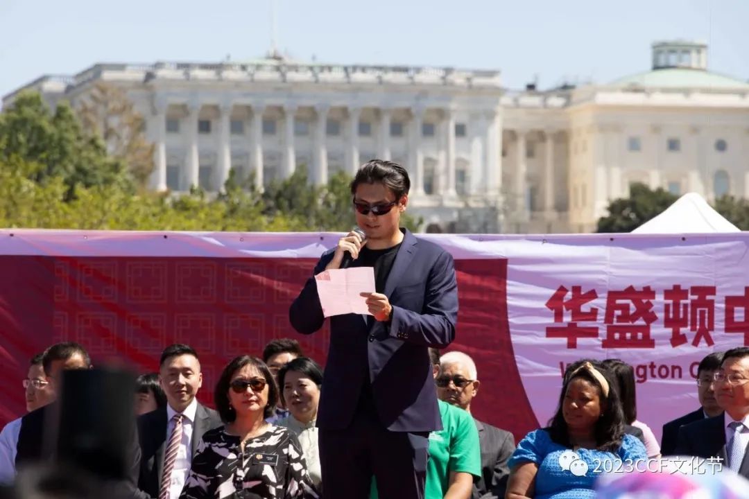 华裔青年代表贾桐宣读总统贺信。美国总统拜登在贺信中说“我向在首都参加华盛顿中国文化节的朋友们致以最热烈的问候。我们的国家因华裔美国人的巨大贡献而变得更加丰富多彩。无数华人移民在这里开始了自己的生活并找到了新的家园,帮助塑造了我们国家多元化的特质。几代人以来,他们帮助美国致力于家庭和社区的理念更加深入人心,为我们的国家带来活力、创新和新的思想观念;并日益成为加强国家团结的重要纽带之一。我祝愿朋友们度过美好的一天,感谢华裔美国人用丰富的文化、习俗和才华为我们的国家锦上添花。”
