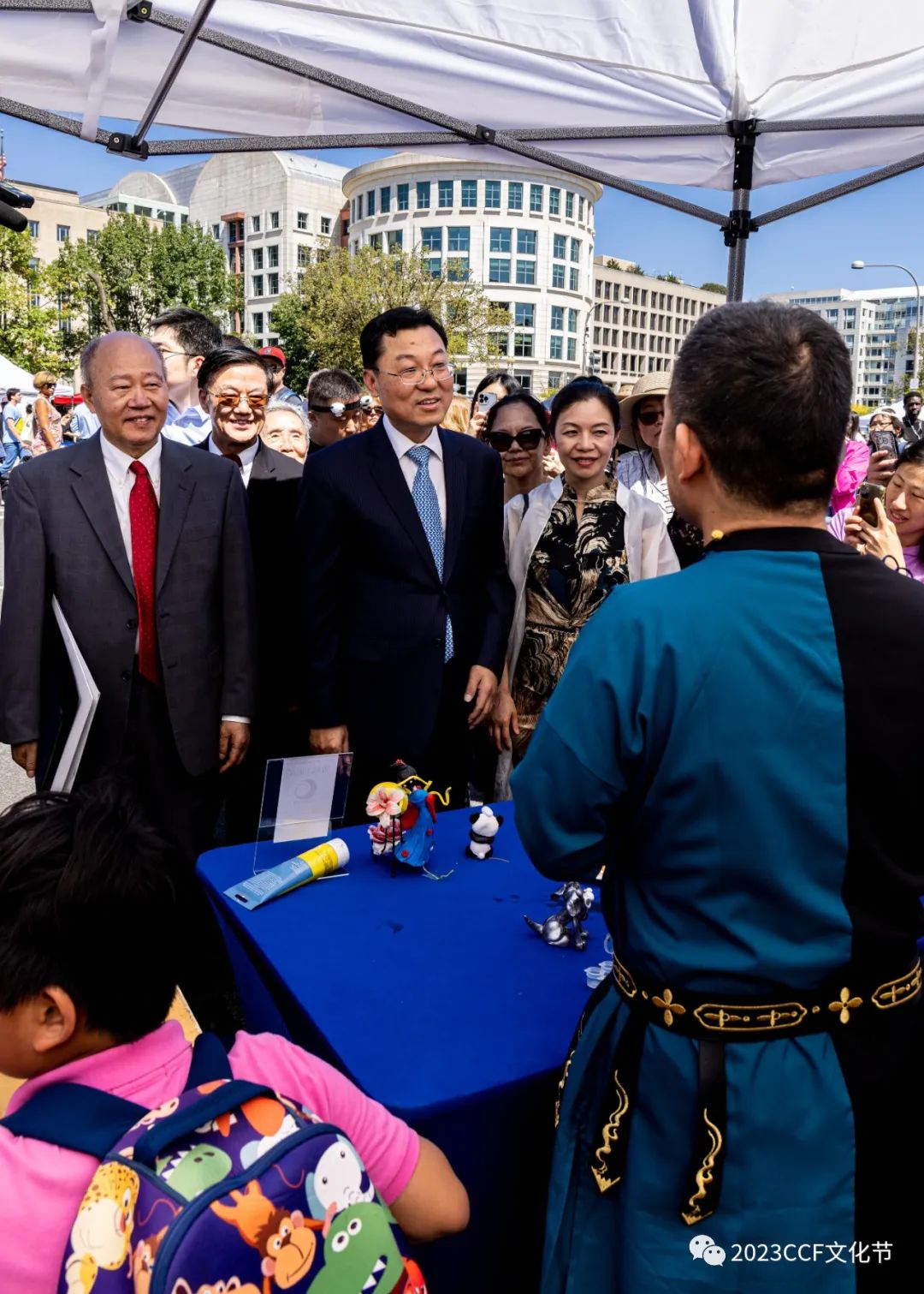 开幕式结束,主办方陪同嘉宾参观文化体验展区。谢锋大使在每个展区前与民众进行交流,“本次文化节在三年疫情后再次召开,大家不仅能品味‘舌尖上的中国’,还有机会赏歌舞、捏面人、画脸谱、练太极,亲身体验中国文化的悠悠古韵和勃勃生机。”