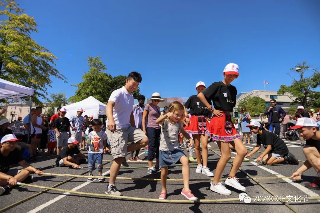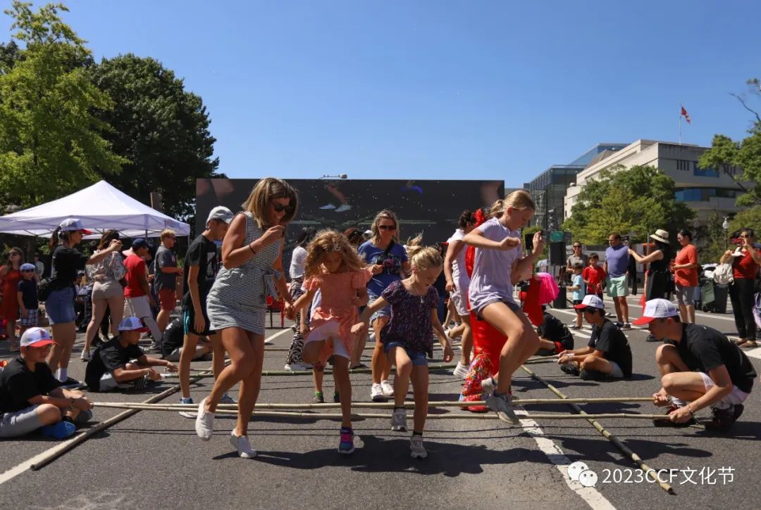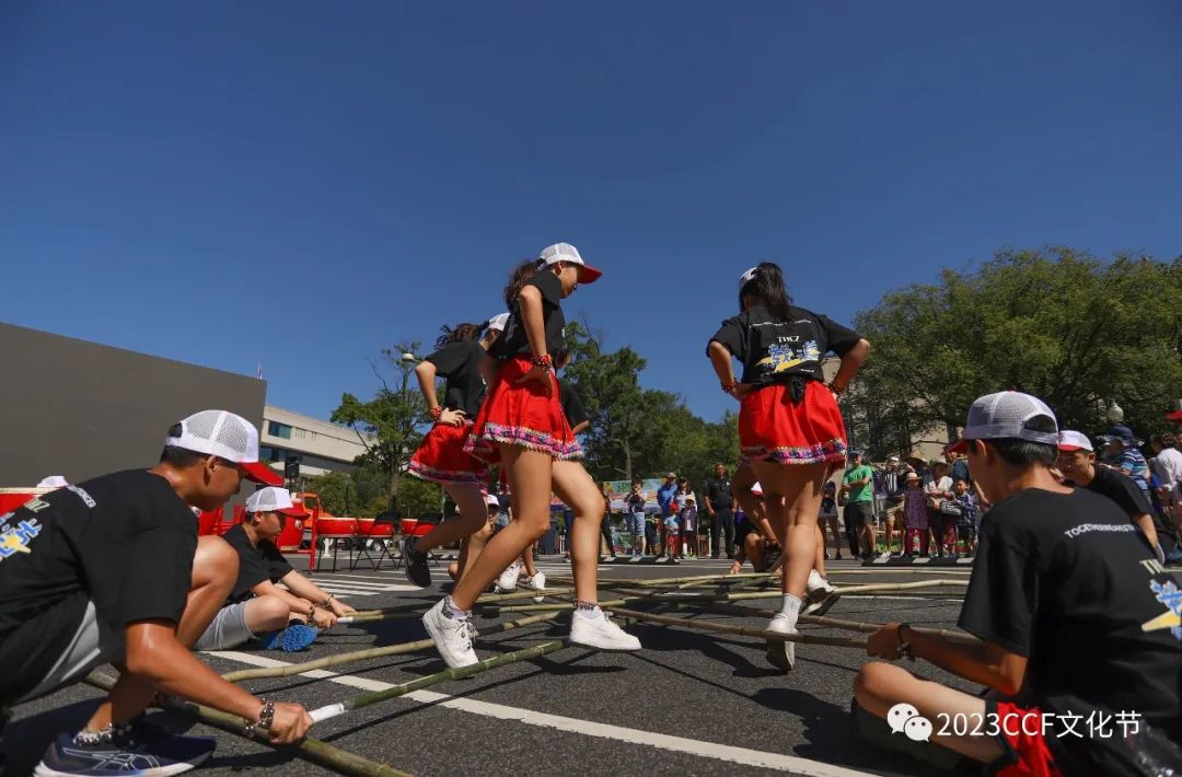 随着音乐声响起,络绎不绝的美国民众排着队,争先恐后地跳起竹竿舞。人们被这欢快节奏的舞蹈和孩子们的热情深深吸引,现场人头攒动,音乐不停,舞蹈不停。