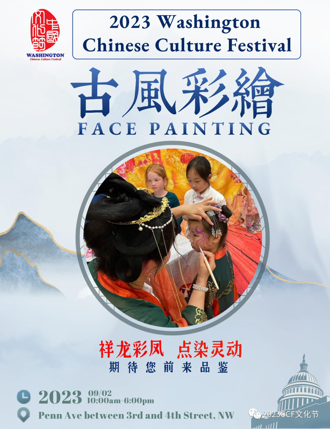 第21届华盛顿中国文化节将于2023年9月2日上午10点在美国首都DC(Pennsylvania Ave between 3 and 4td streets,10 am-6pm,FREE)开幕。整个中国文化节的重头戏部分——中国传统文化体验:传统文化表演+游客互动体验+文化产品可售。整个文化体验区域将像是一个乐园,除了文化展示,互动体验,可售产品之外,还保持了随处可见的古典造型人物,以及定时表演的文化秀。让游客们参与互动的文化体验项目门类和数量也创下了新的记录,有古风拍照、捏面人、彩绘脸谱、刺绣中的苏绣表演、手绘扇子、剪纸、书法、茶道、武术器材展示、汉服展示、中医、太极拳表演等等,共有26个文化体验项目供游客们打卡。主办方准备了精美的礼品,集齐一定数量的印章可以去现场置换礼品。伙伴们向快乐出发,冲鸭!