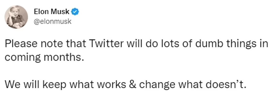 他写道“请注意,推特在接下来的几个月里会做很多愚蠢的事情。我们将保留适合的,改变不适合的。”