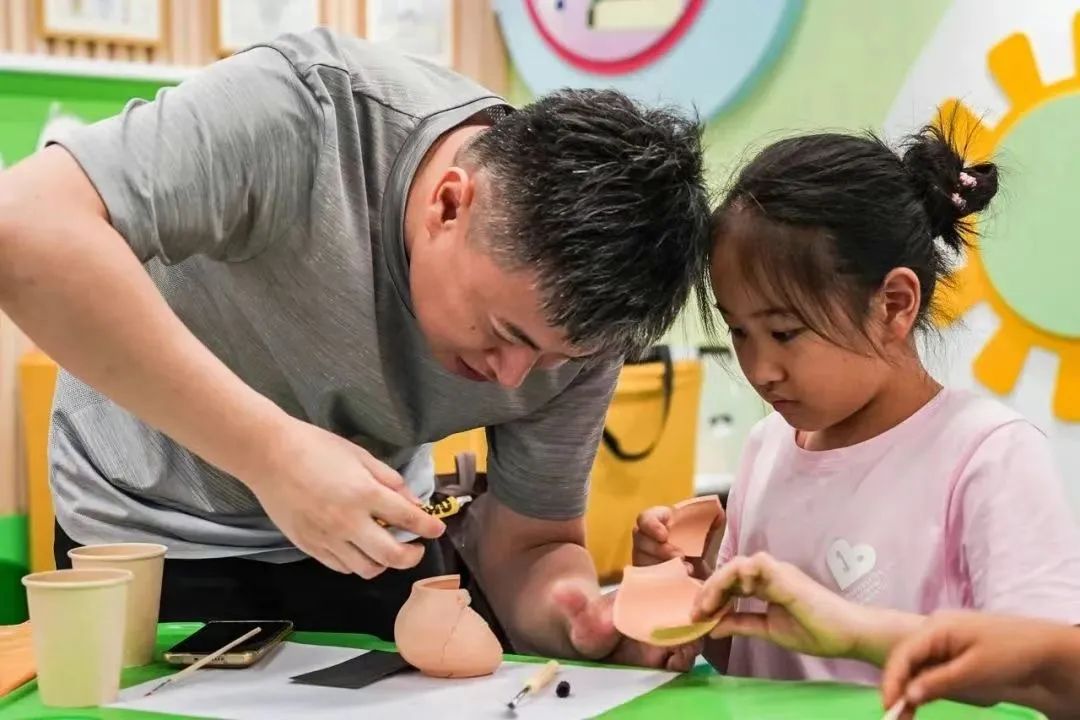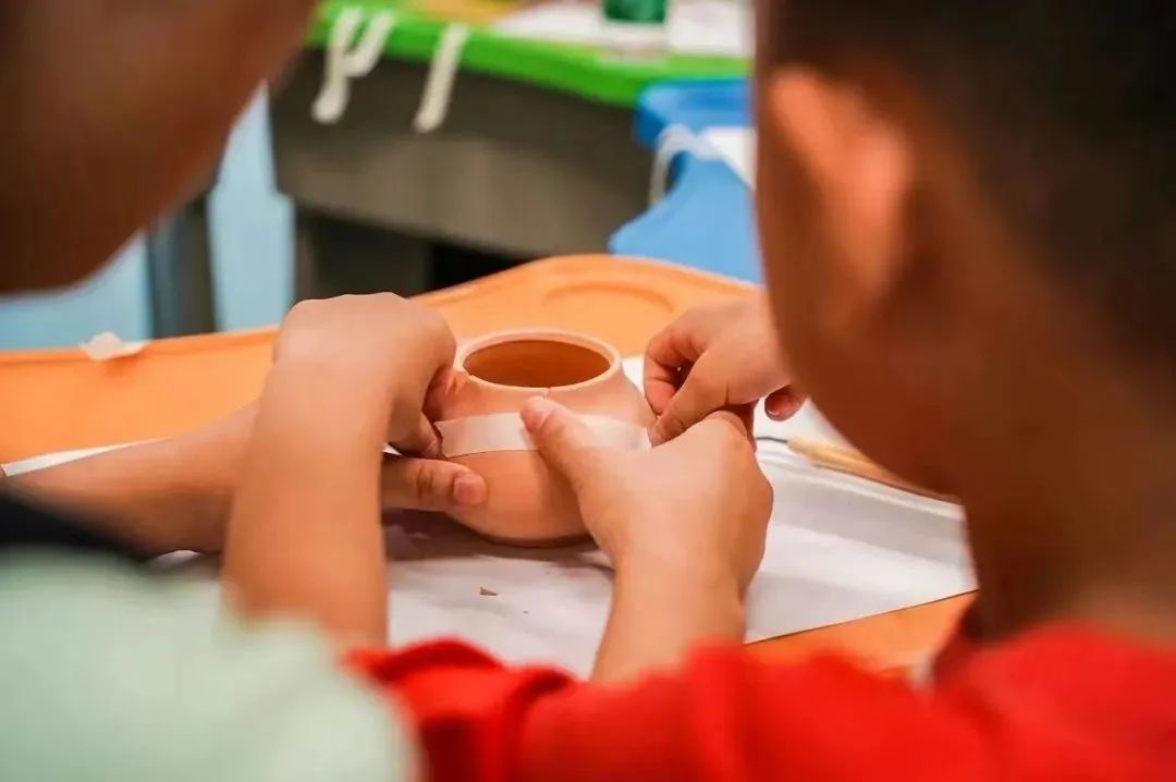 课程以探寻吴文化起源开篇,向营员朋友们叙述吴地古今故事。毛笔字“吴”字教学,通过“吴”字字体演变过程讲述吴文化发展历程;《钱氏家训》诵读,带领营员们聆听国学大师钱穆和中国力学之父钱伟长故事,感知国家级非物质文化遗产独特魅力,体悟家风传承内涵,争做“弘扬中华美德,传承良好家风”好营员;鸿山葡萄鉴赏,引导营员们云游鸿山葡萄园,感受鸿山风情,一起画葡萄,共同描绘美丽乡村甜蜜画卷;鸿山遗址博物馆参观,吸引营员朋友们倾听出土文物背后故事,观摩数字技术赋予文物鲜活生命,体验陶器修复奥秘,触摸文物“心跳”,感悟吴地历史厚度、吴文化温度。