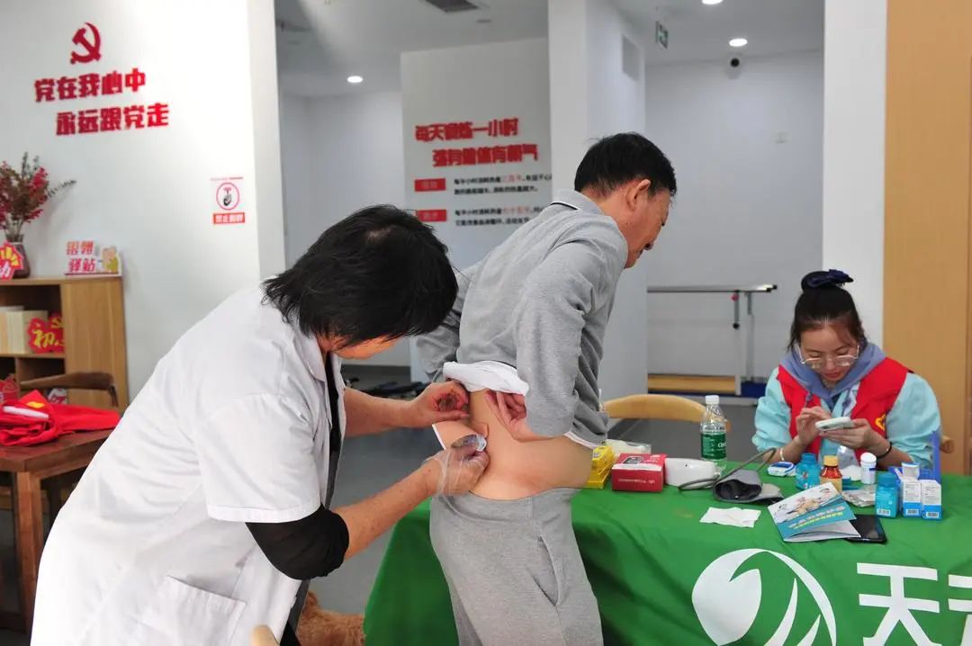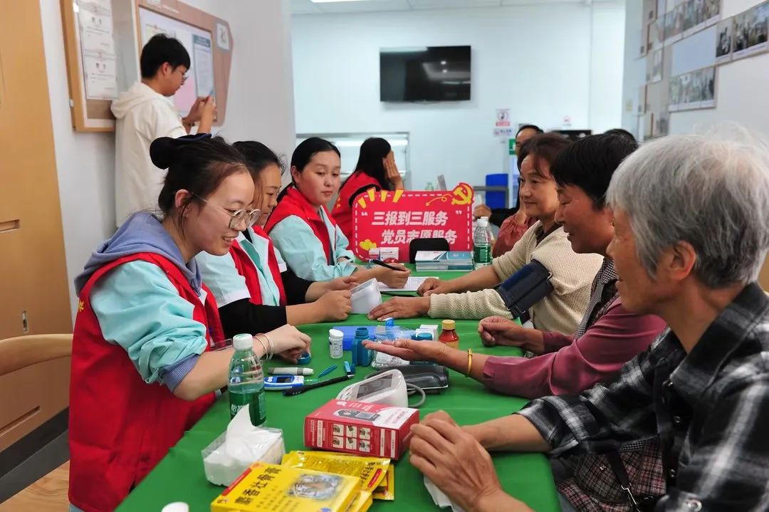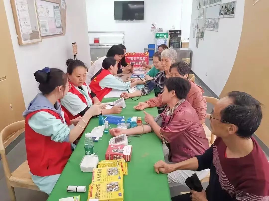 天禾堂便民服务小分队在居家养老服务中心,为老人们测血压和血糖、治疗疼痛、接受医药方面问题咨询。
