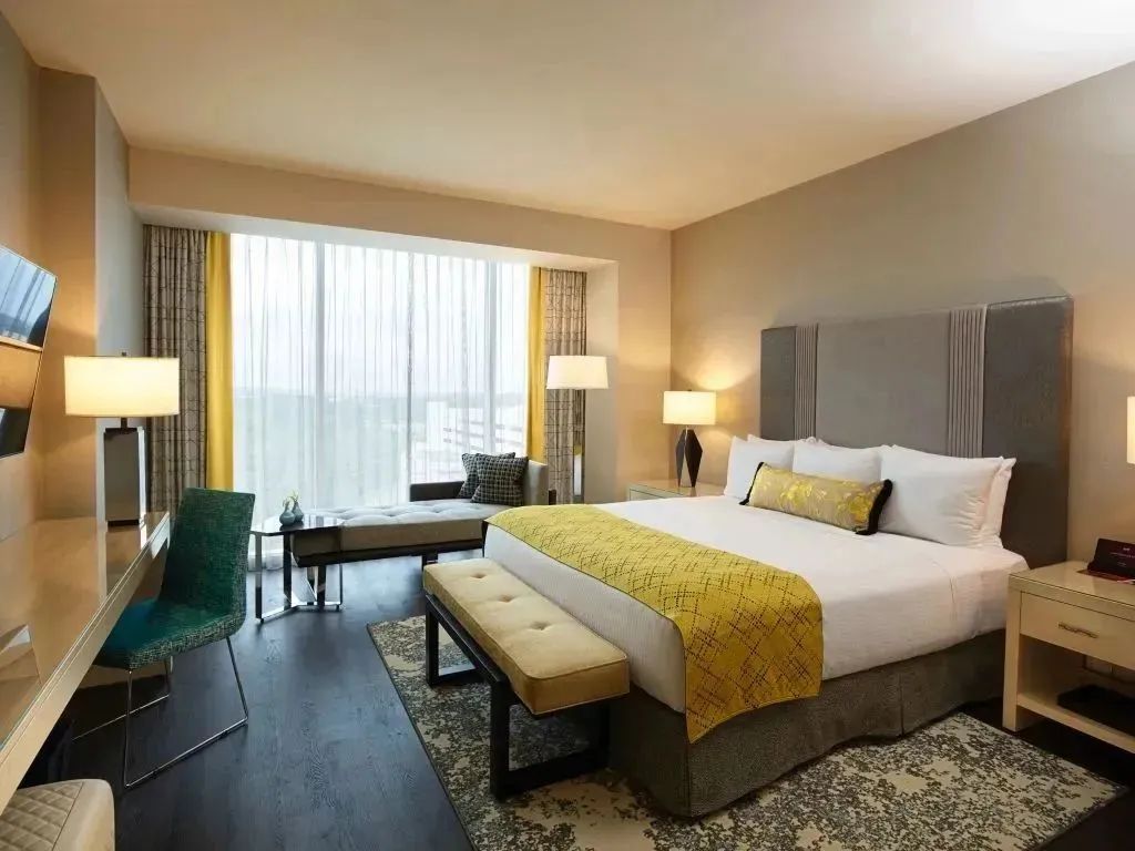 每间Live! Hotel的客房都配备了最新的技术、照明和设施,为旅客提供舒适的氛围和休憩空间。每个房间都采用现代混搭奢华风格,家具造型简洁,空间通透,还有艺术品和配饰巧妙展现Live! 品牌。